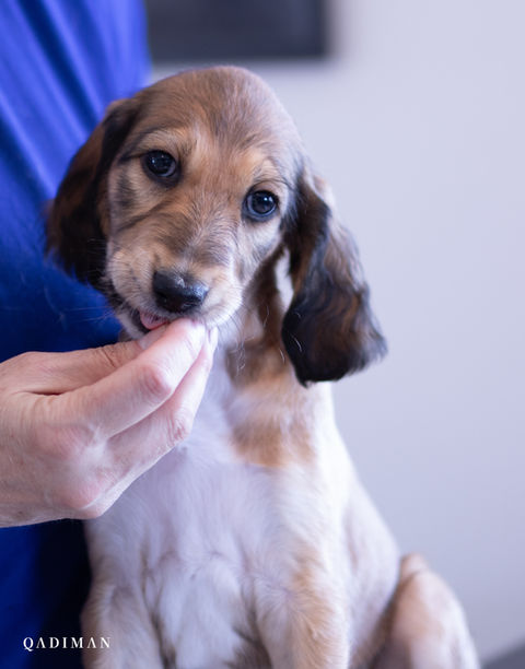 Salukis are a breed of sighthounds that were originally bred in the Middle East - a hunter who rely on their eyesight. Their history can be traced back to ancient times, where they served as loyal companions and skilled hunters for millennia. The Saluki thrive on gentle interactions. If obedience training is your priority, the Saluki might not be a good fit for you. While they maintain their autonomy, Salukis form deep bonds with their families. Salukis are renowned for their elegant and graceful build. Salukis should convey grace, symmetry, speed, endurance and strength. Their expression is dignified and gentle, with soft, far-seeing eyes.